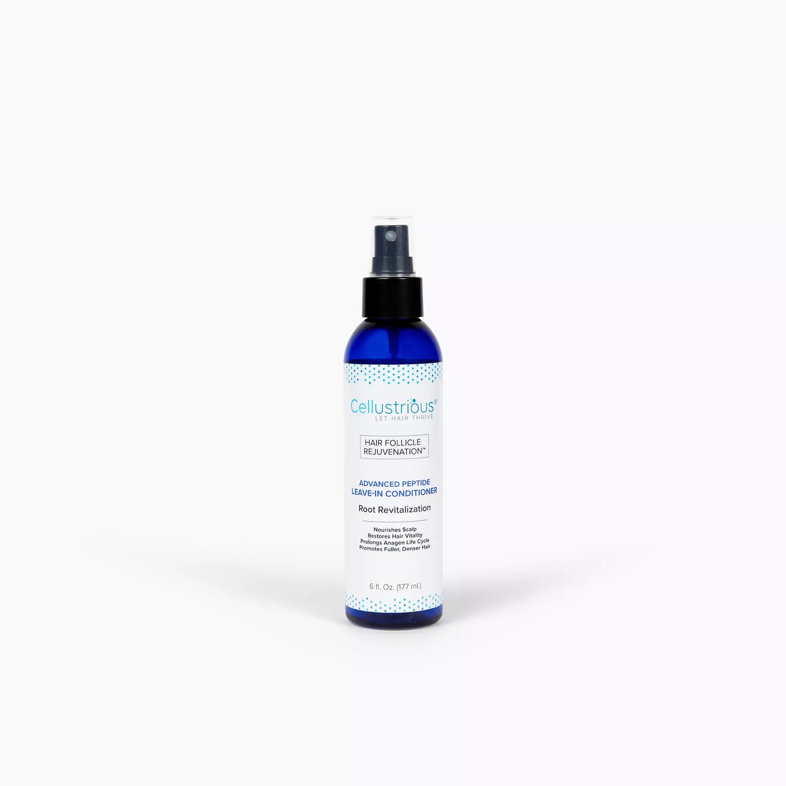 Cellustrious® Advanced Peptide Leave-in Conditioner is formulated to prolong the anagen (growth hair cycle) phase by using powerful peptides to nourish and strengthen the hair’s root system.