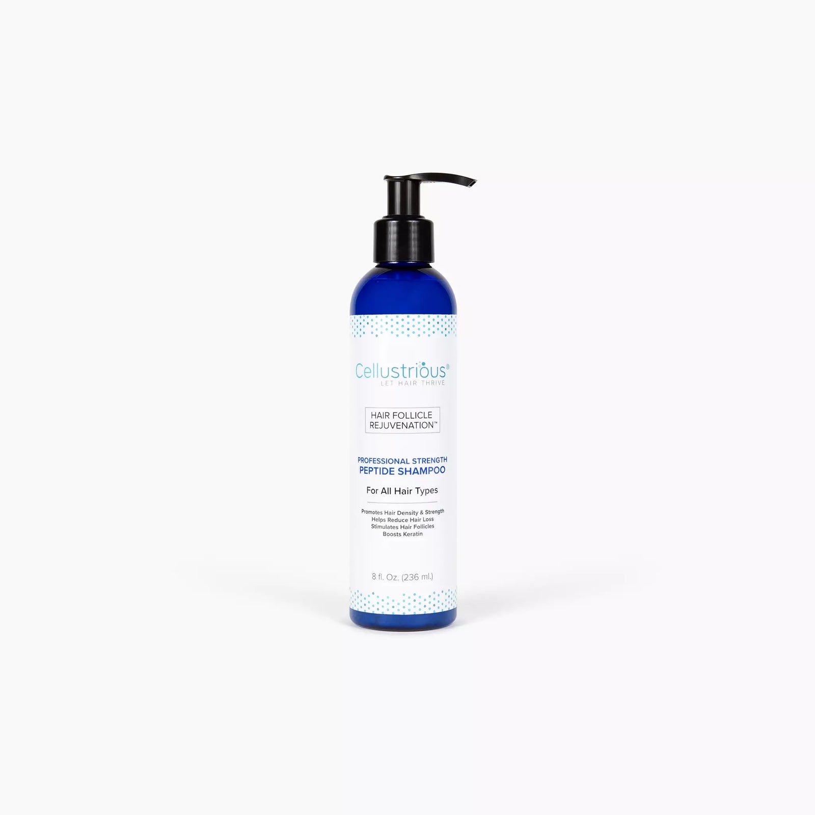 The Cellustrious® Professional Strength Peptide Shampoo is designed to cleanse and remove build-up, and prolong the life cycle of the hair. It restores vitality, promotes fullness, and helps reduce fallout.