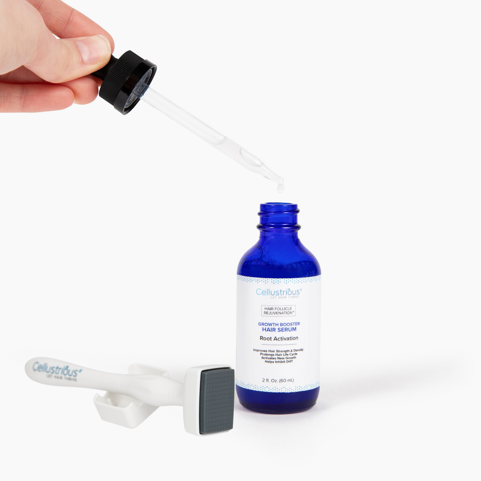 The Cellustrious® Growth Booster Hair Serum must be used along with the Cellustrious® Scalp Stamp for maximum results and penetration.